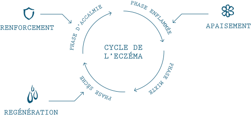 Elle a formulé ses soins elle-même, après de nombreux essais, entourée d'experts de la dermocosmétique, pour enfin créer la 1ère gamme adaptée au cycle de l'eczéma efficace,